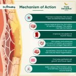 It helps cleanse the wound, supports tissue regeneration, improves circulation, and promotes collagen formation to aid natural skin repair.