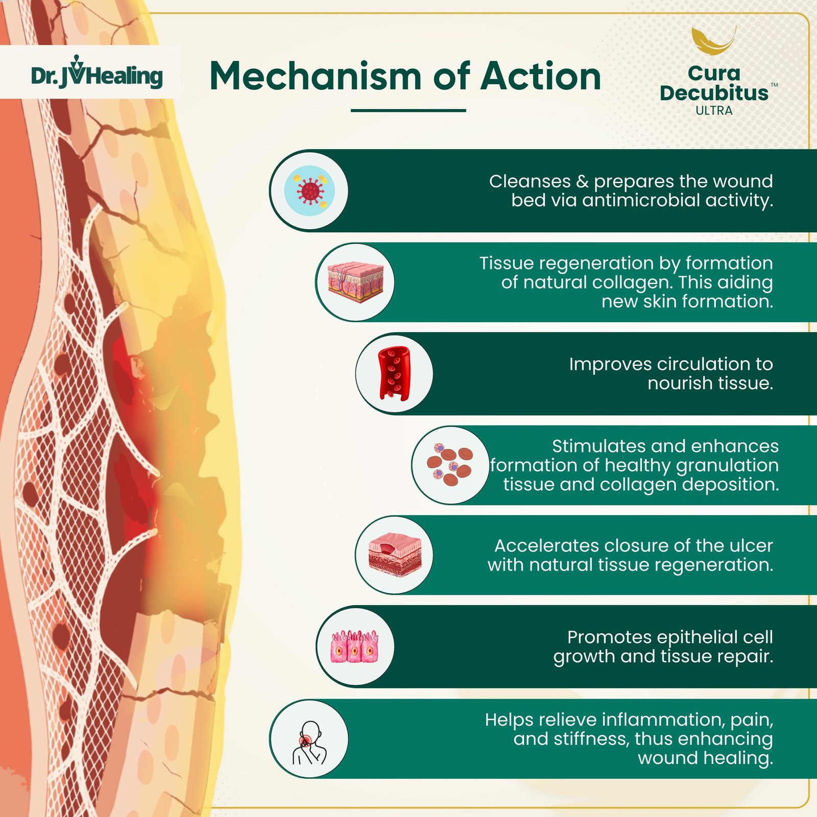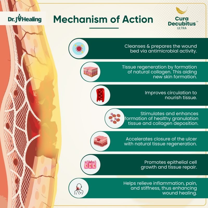 - Cura Decubitus™ Ultra is applied directly to the wound to support cleansing, tissue regeneration, collagen formation, and faster healing.